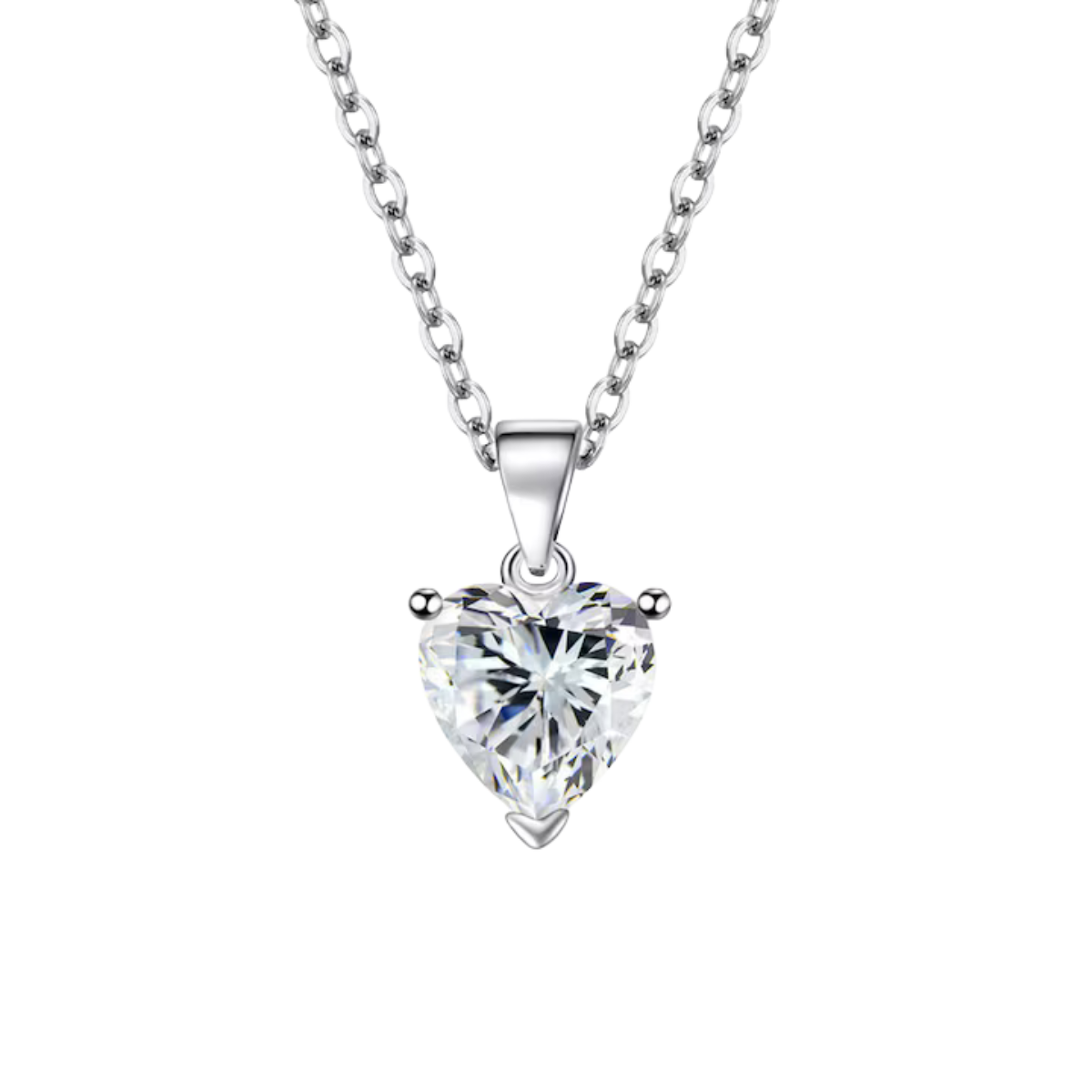 Colier elegant cu pandantiv în formă de inimă, strălucitor și împodobit cu o piatră albă vibrantă, tăiată cu precizie pentru a reflecta lumina din toate unghiurile. Lanțul fin cu zale răsucite adaugă un plus de rafinament, iar contrastul dintre argintul lucios și albul intens al pietrei creează un efect vizual deosebit, ideal pentru a exprima pasiune și eleganță.