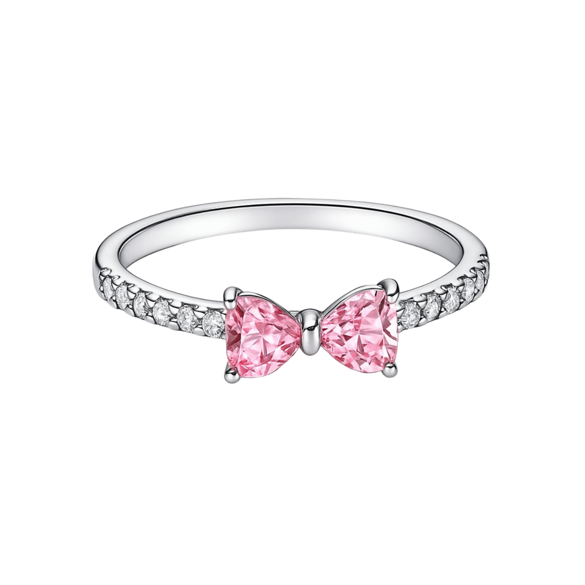 Inel în formă de Fundă Roz / Argintiu în Relief